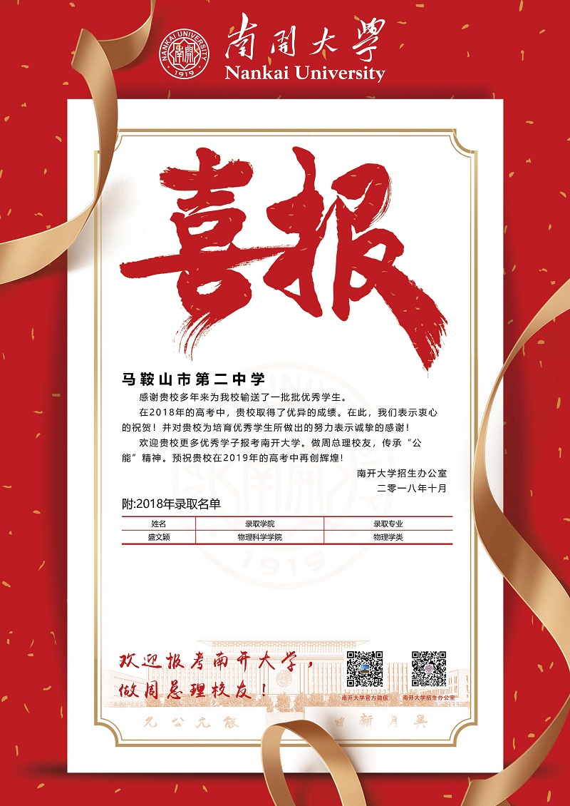 南開大學(xué)喜報