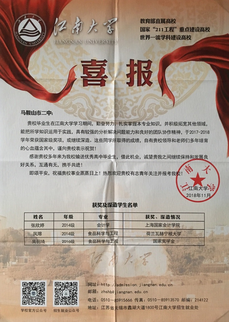 江南大學喜報