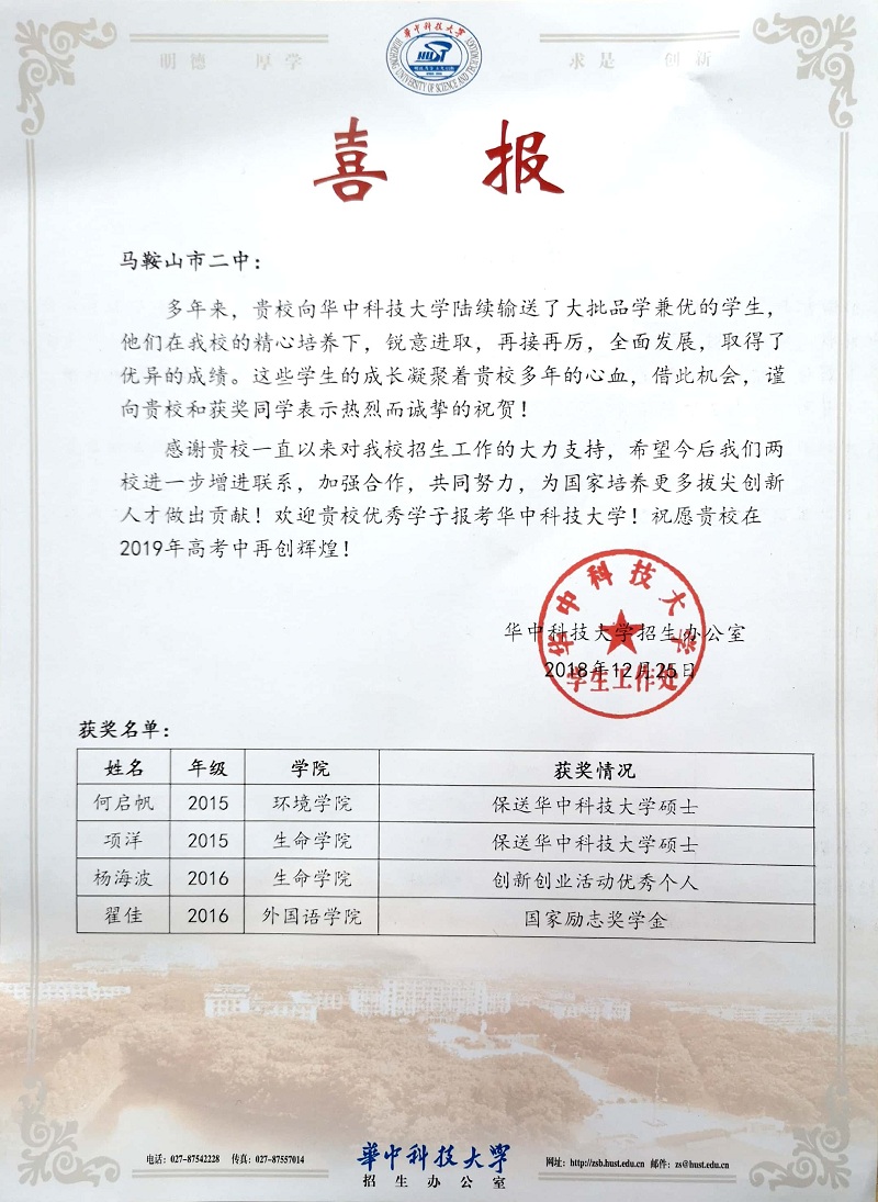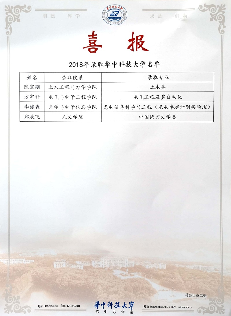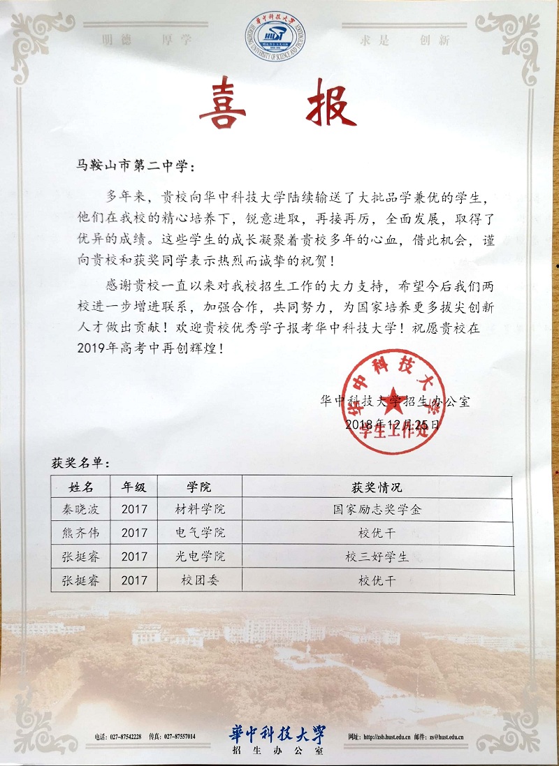 華中(zhōng)科技大學喜報