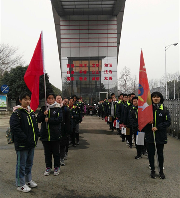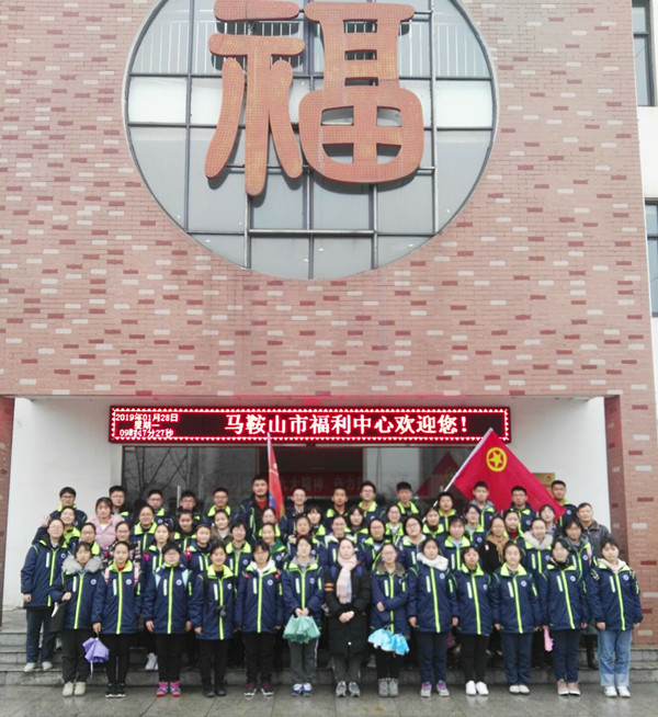 2019年1月28日上午,103班56名同學在班主任嶽老師的帶領下,到馬鞍山市福利中心開展慰問活動(dòng)。雖然天公(gōng)不作美,淅瀝瀝下起了小雨,並(bìng)沒有影響大家高(gāo)漲的熱情。在校旗和班旗的引領下(xià),我(wǒ)們排著整(zhěng)齊的隊伍,徒步四十分鍾來到了福利中(zhōng)心。