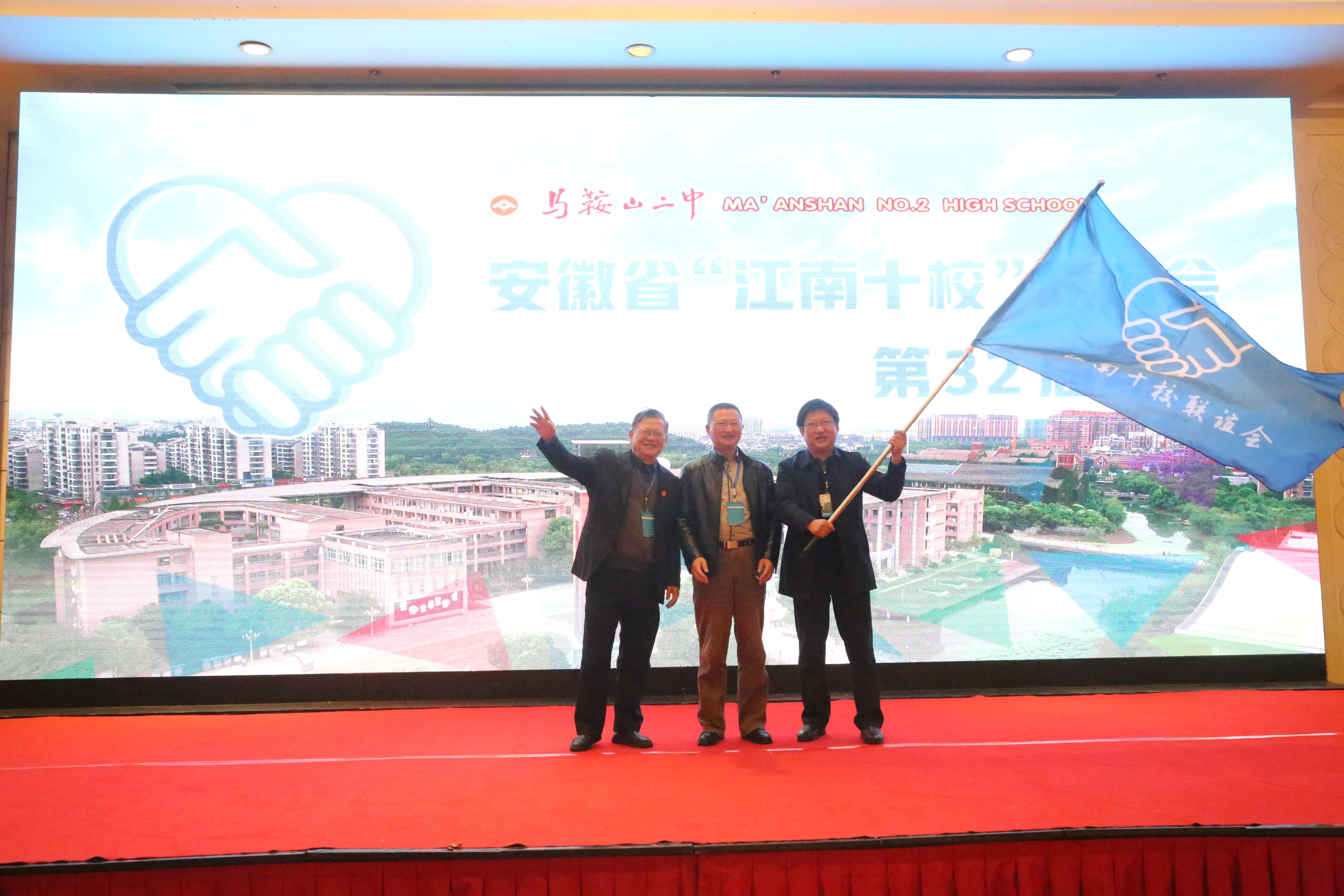 年會最(zuì)後,馬(mǎ)鞍山(shān)二中將年會會旗交(jiāo)給第33屆(jiè)江南十校聯誼(yì)會承(chéng)辦(bàn)學校寧國(guó)中學,預祝下屆(jiè)年會順利舉行。