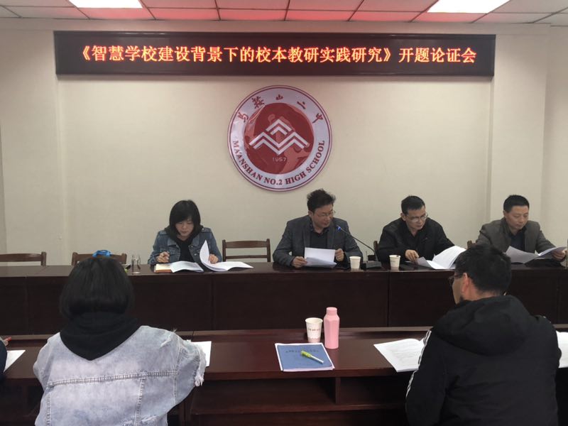 3月27日下(xià)午2:30,我校在一樓會議室舉行了市級專項課題《智(zhì)慧學校建設背景下的校本教研實踐研究》開題論證會議。馬鞍山(shān)市教科院劉決(jué)生、電教館錢開麗老師蒞臨指導。王玉平副校長、伍玉魁主任、盧大亮老師及全體課題組成員共同參會。