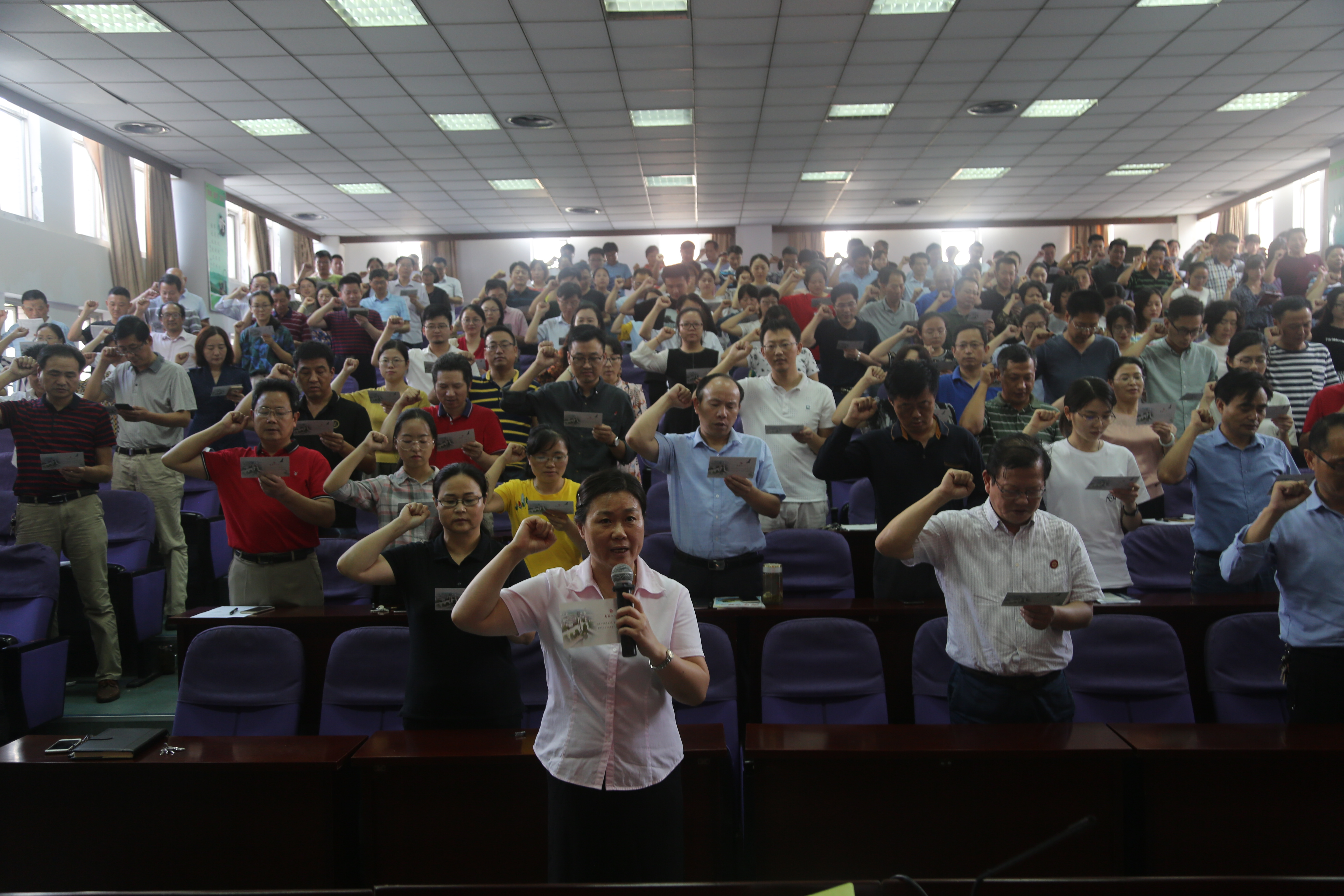 在黨(dǎng)委書記(jì)聶曉霞同(tóng)誌的帶領下,全體教師重溫教師誓詞並進(jìn)行了集(jí)體宣誓。鏗鏘有力的宣誓響徹了整個會場。