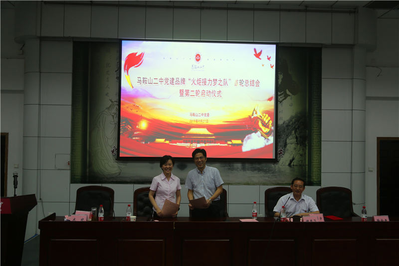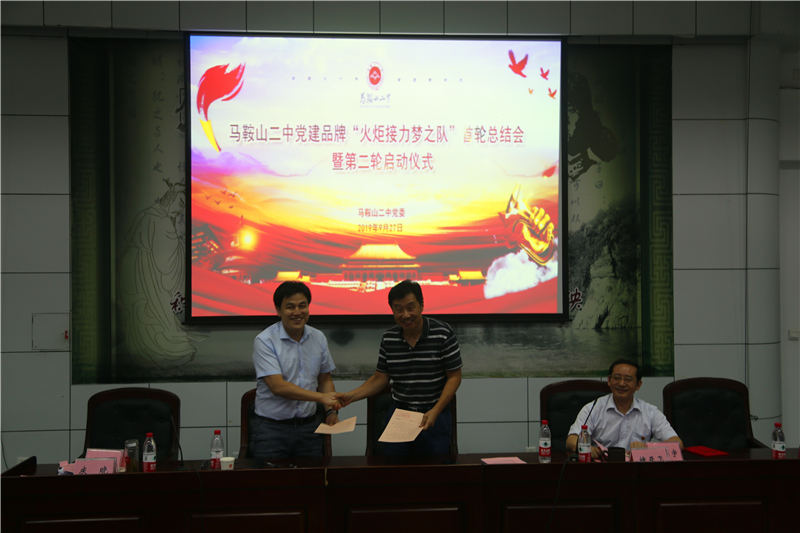 啟動儀式上,校黨委委員(yuán)、校長郭(guō)惠宇作(zuò)學校黨建品牌“火炬接力夢(mèng)之隊”第(dì)一輪工作總結(jié),並宣讀《關於二中黨建品牌“火炬接力夢之隊(duì)”首輪(lún)考核結果的通知》,校黨委委員、副校長慶曉宣讀了《馬鞍(ān)山二中黨建品牌“火炬接力夢之隊”第二輪實施方案》及第二輪結(jié)對火(huǒ)炬接力組(zǔ)名單。校領導為馬鞍山(shān)二中黨(dǎng)建品牌“火(huǒ)炬接(jiē)力夢之隊”首輪考核獲獎接力組頒獎,並為第二(èr)輪火炬接力組傳遞人頒發聘書,隨(suí)後火炬傳遞人、火炬(jù)接力人(rén)現場簽訂《“火炬接力夢之隊”結對協議書》。杜飛老師作為(wéi)首輪考(kǎo)核獲獎接力人代表,張毅老師(shī)作為火炬接力人代表,校教科處主任伍玉魁老師作為火(huǒ)炬傳遞人代表,分別作了言簡意賅、意義深刻的精彩發言。