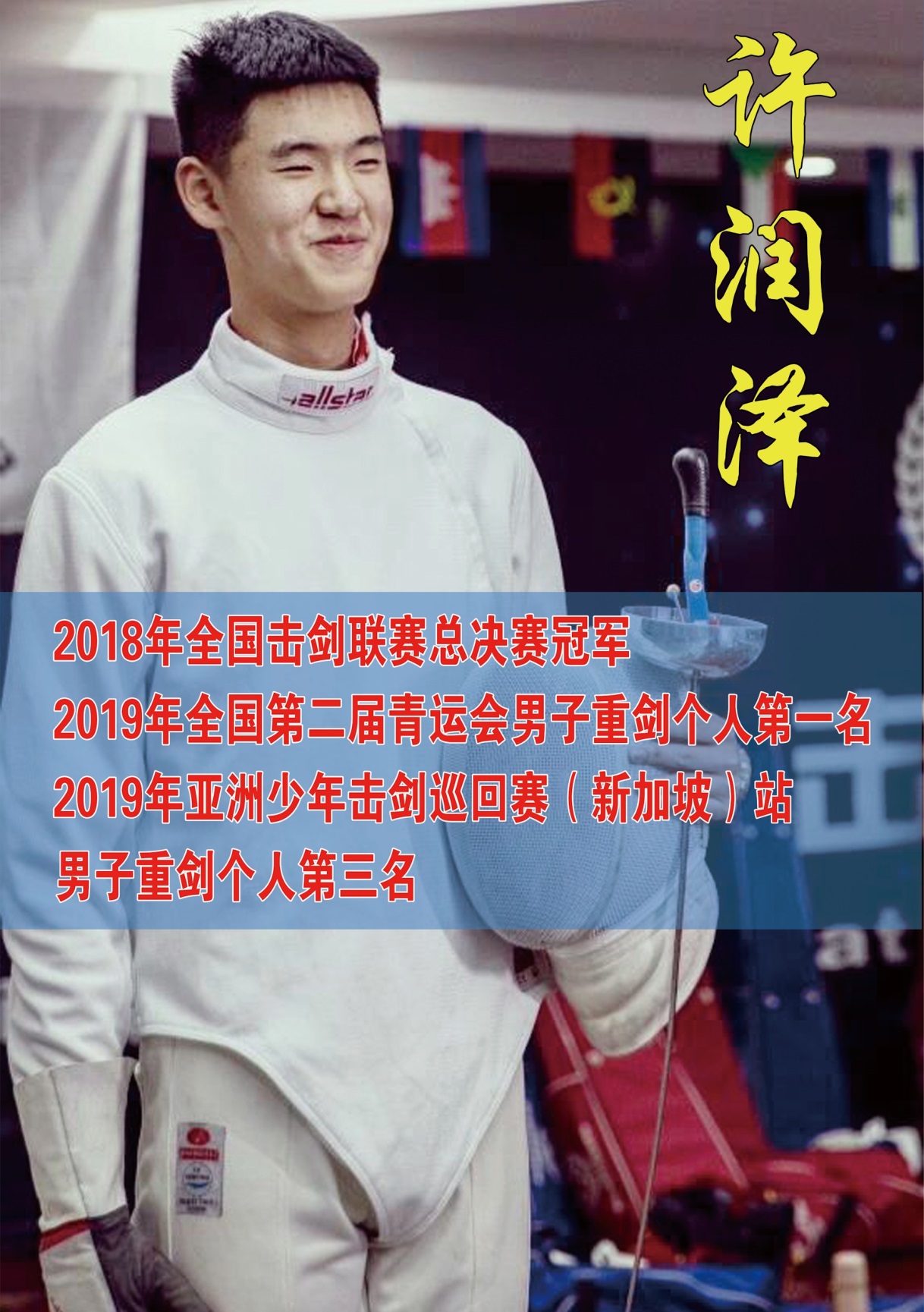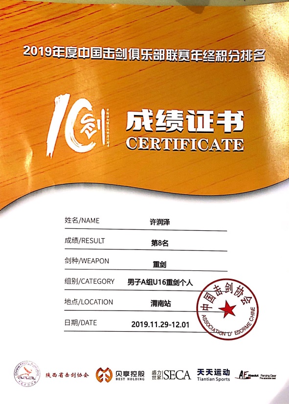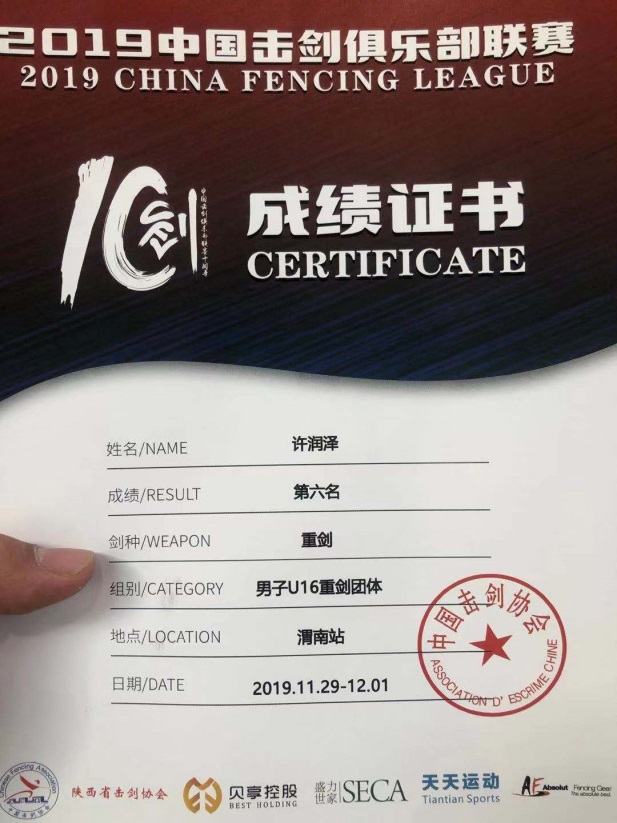 2019年11月30日,我校許潤澤同學參加了(le)在陝西渭南舉行的中國擊劍俱樂部聯賽總決賽,本次比賽共有來自全國各地的3000餘人參加(jiā),在為期三天的比賽中決出了不同劍種、組別的年度總冠軍和總決賽冠軍。比賽中許潤澤(zé)同學展現出了精湛(zhàn)的(de)劍術,表現(xiàn)出了二中(zhōng)學生(shēng)的優秀品質,最終獲得(dé)全(quán)國擊劍(jiàn)聯賽總決賽U16A男子重劍團體第六名;年(nián)終總積分(fèn)排(pái)名第八名,獲得入選國家少年隊選撥賽資格;有望代表國家隊參加2020年亞洲少年擊劍錦標賽,世界少年擊劍錦標賽(sài)。