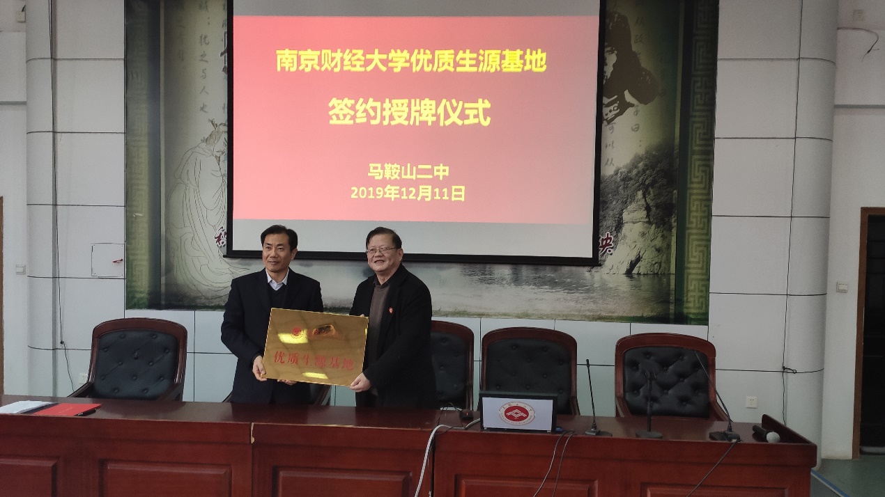 12月11日(rì)下午,南京財經大(dà)學王宏勇教授代表南京財經(jīng)大學(xué)專程來我校舉行優質生源基地授牌儀式。我校郭惠宇校長、教導處葉張(zhāng)平主任、喻全貴副主任和高三年級部張陳副主任代表學校參加活動。