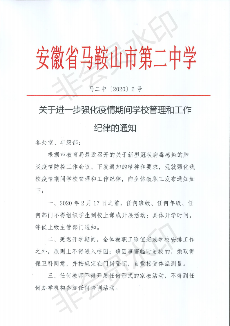 關於進一步強化疫情期間學校管(guǎn)理(lǐ)和(hé)工(gōng)作紀律的通知