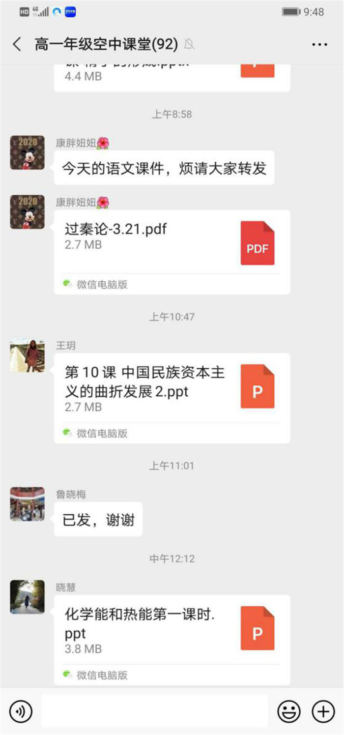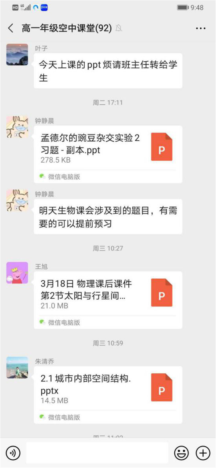 新形勢新挑戰,空中課堂如何備課,如何教授,是擺(bǎi)在授(shòu)課教師前麵的一道(dào)前所未有的難題,但高一授課教師堅守停課不停教,守教有責(zé),為師盡責(zé)的思想,克服困難,積極應對(duì),用新媒體新(xīn)形式開展了豐富多彩的空中課堂教學。年級部主任(rèn)王玥和(hé)授課教師充分(fèn)利用“高一班主任工作群”和“高一空中課堂群”,每天及時發布授課課件和作業,推送“空中課堂認真讀(dú)調查表”,供班主任和家長參考,督促學生充分學習,有效學習。