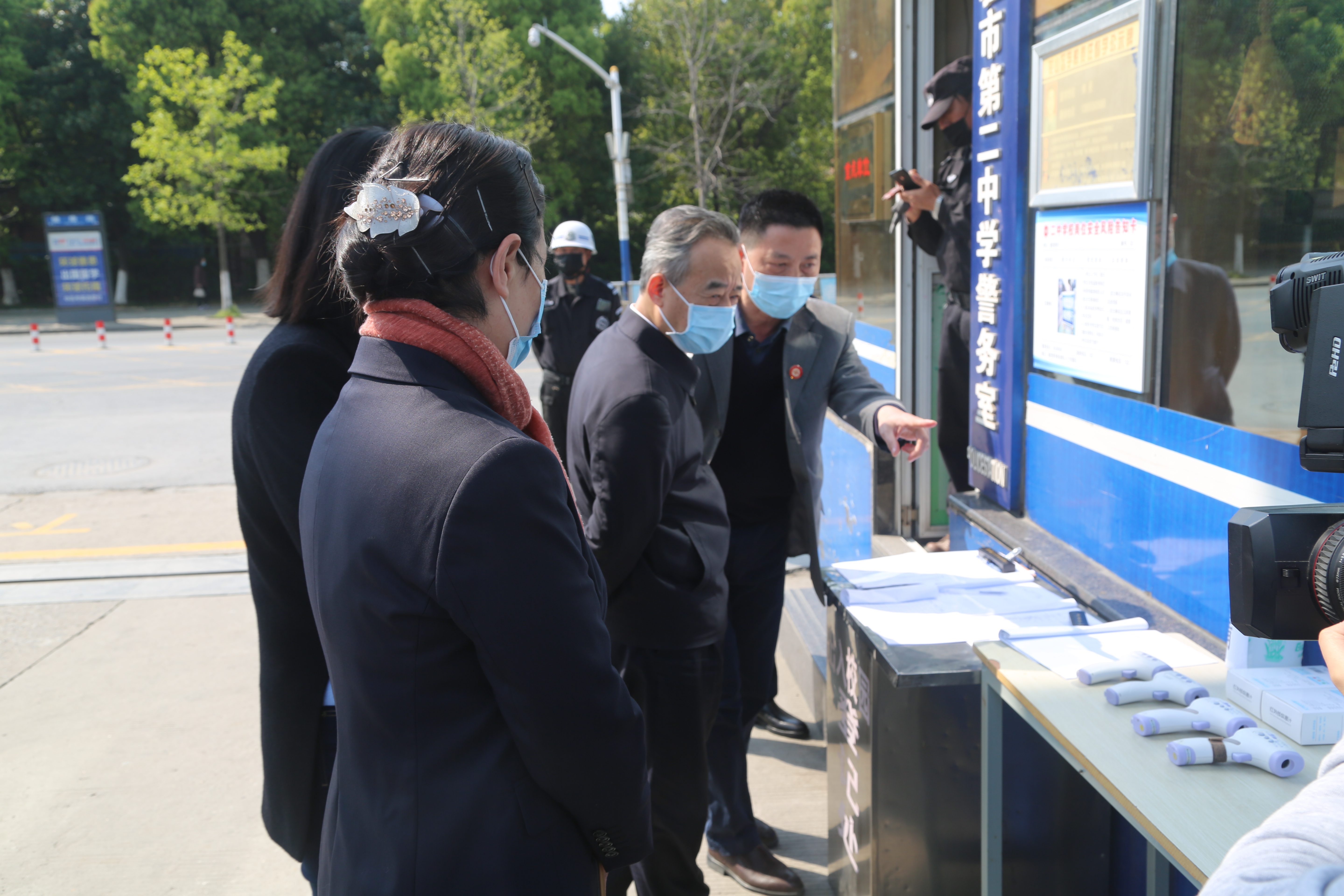 4月9日上午,市委書記張嶽峰來我校督查(chá)學生返校複課防(fáng)疫工(gōng)作,市政府副市長(zhǎng)闞青鶴,市委副秘書長、市委辦公室主任郝世鑄,市(shì)委副秘書長、市委政研室(shì)主任劉煜,市教育局黨委書記、局長汪昌斌,市(shì)衛(wèi)健委主任楊榮(róng)明陪同督查。校領導及相關部門負責人全程陪同。