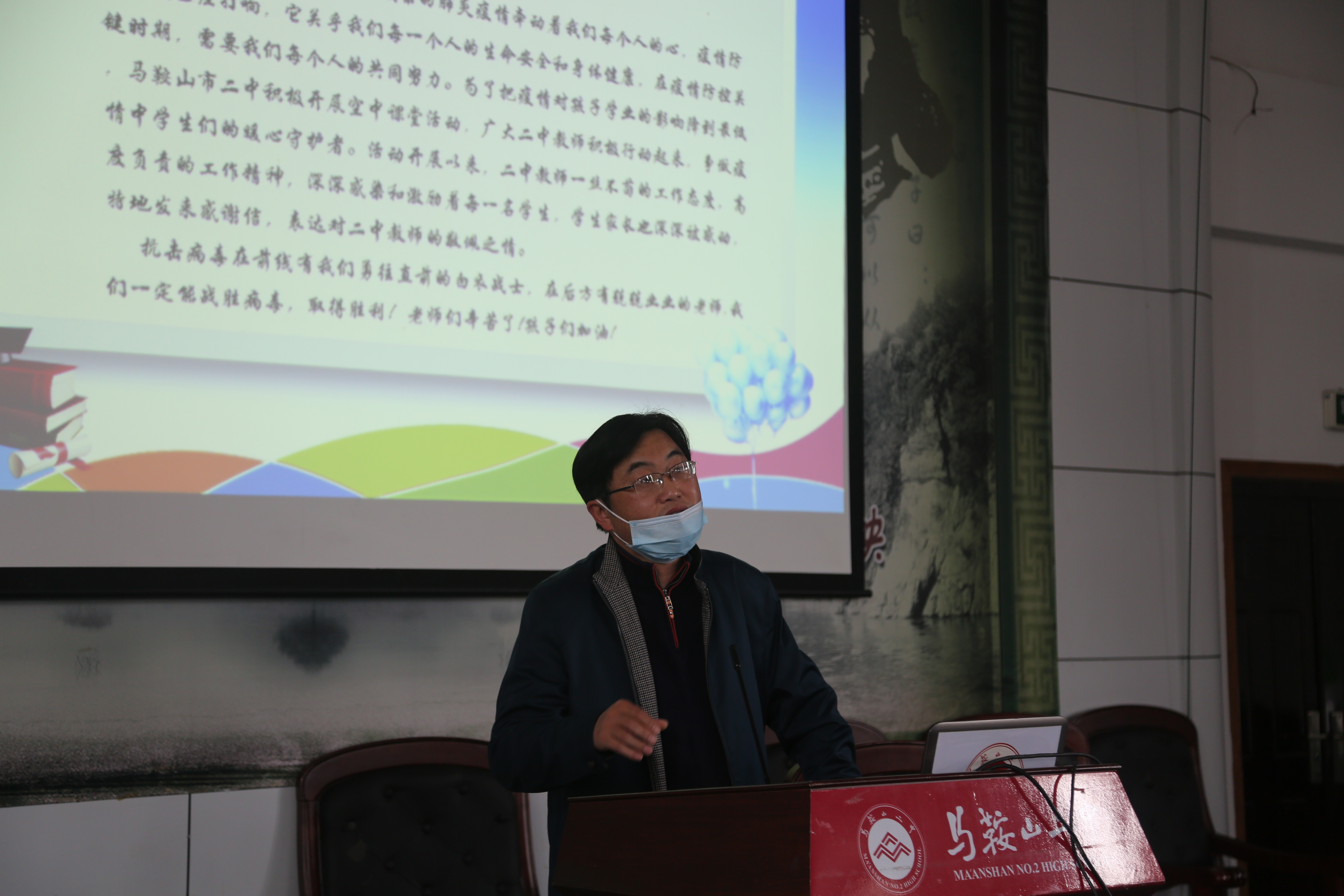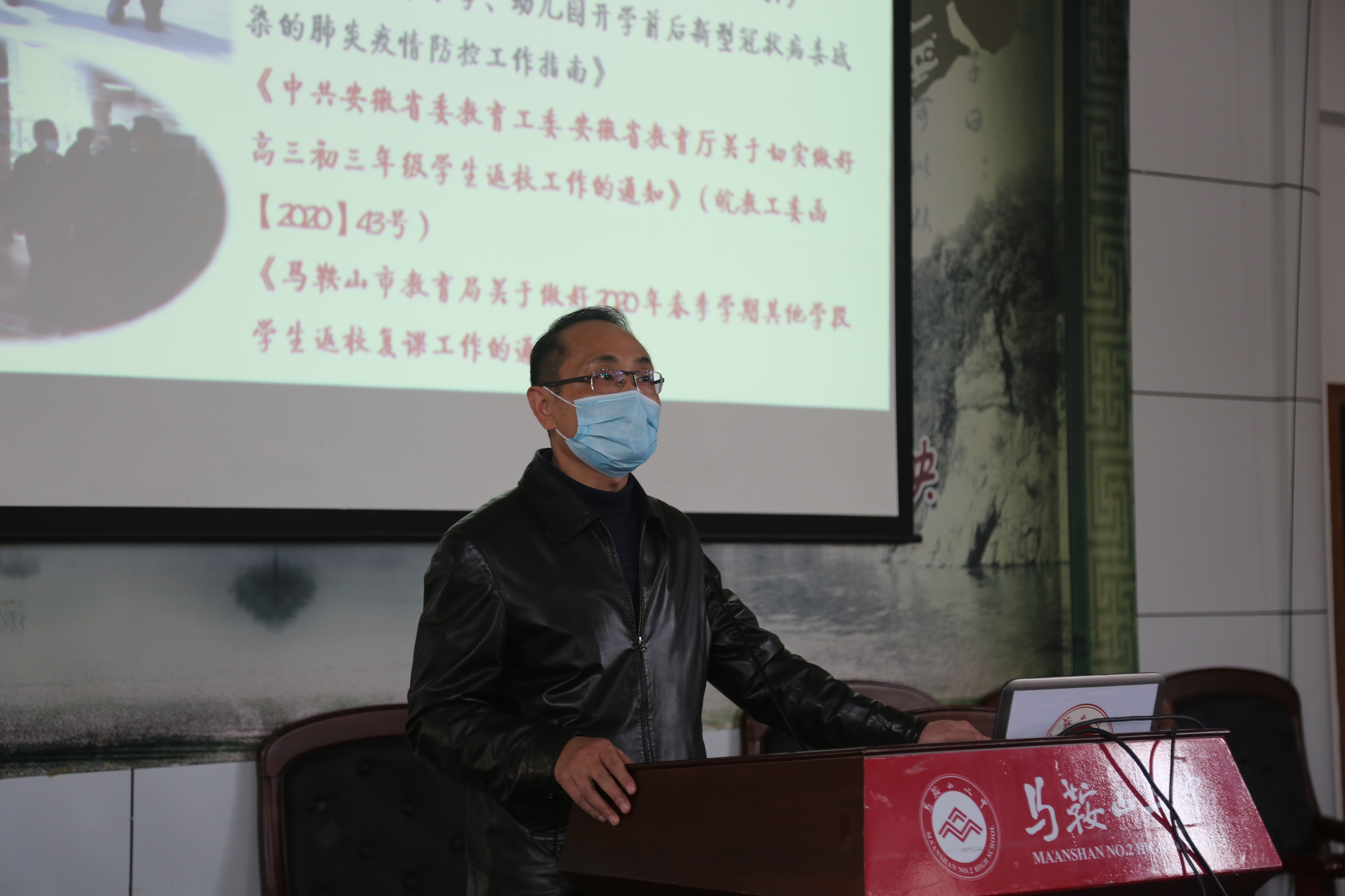 2020年4月16日下午(wǔ)兩(liǎng)點半,馬鞍山二中2019-2020學(xué)年第二學期高一、高二年級開學(xué)工作大會在二樓報告廳隆重舉行。高一、高二年級全體教師(shī)以及(jí)行政、教輔、後勤人員參加了會(huì)議。