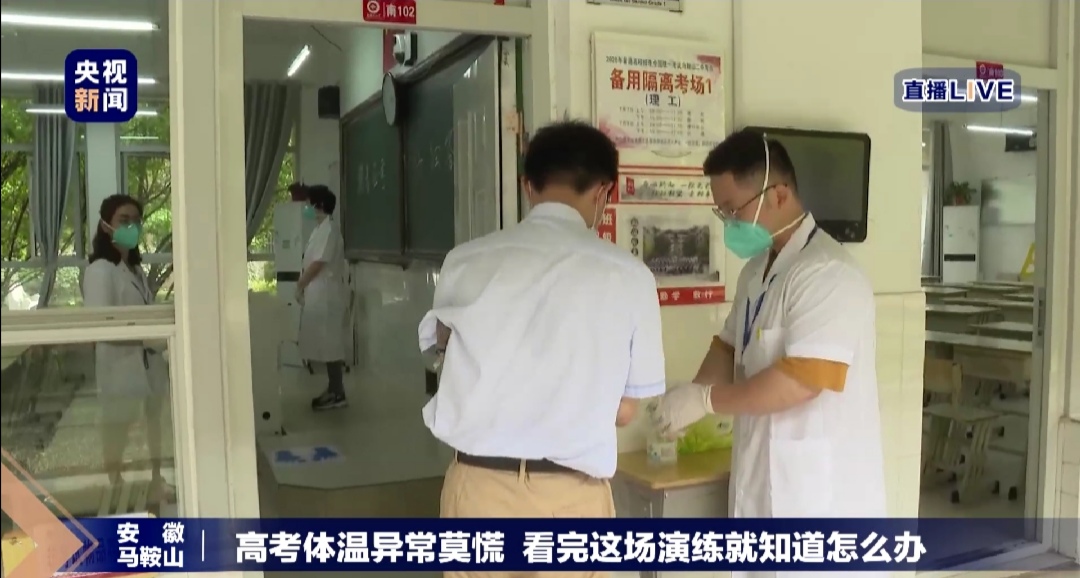 隨後,學校又預演了在普通考場監考過(guò)程中如果學生出現體溫(wēn)異常,學校該如何處置。在(zài)南205考場,一名女生扮演出現連續咳嗽症狀,這時(shí)監考教師對(duì)考(kǎo)生表示(shì)關心,並引導考生到(dào)考場外的走廊坐下休息(xī),監考(kǎo)教師報告樓層監考,隨即樓層監考記錄下考生離開(kāi)考場的時間,並對該考生進行體溫檢測,最後(hòu)將學生咳嗽(sòu)症(zhèng)狀和(hé)檢測結果報學校考(kǎo)點辦公室,考點主考下達指令要求負責(zé)疫情(qíng)應急防控處理的副主考率領(lǐng)應急處置小(xiǎo)組成員(yuán)前往處置。