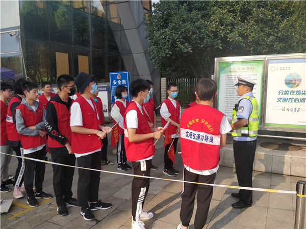 上午8時,楚江大隊胡誌斌警官為高(gāo)一年級(jí)部分學生發放“文明勸導員”服裝,講解文明交通、交(jiāo)通安全重要性等,提(tí)醒學生交通安全需要每一位參與(yǔ)者自(zì)覺遵守交通法規,自覺維護文明交通的基本準(zhǔn)則。隨後在胡警官的帶領(lǐng)下,學生們有序前(qián)往路口進行交通勸導。
