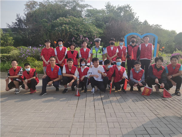 交通安全教育活動圓滿結束,同學們和胡警官合(hé)影留念