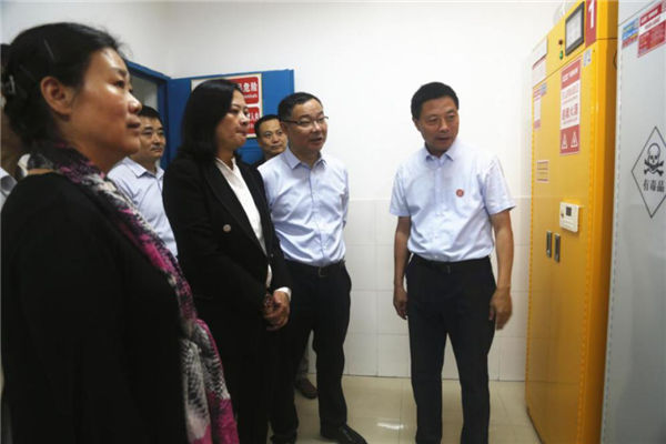 9月23日上午,馬鞍山(shān)市副市長闞青鶴、市教育局、市住建局、市衛健(jiàn)委、市應急管理局、市市場監管局負責人等相關領導及工作人員一(yī)行來我(wǒ)校督查食堂食(shí)品安全管理及實驗室危化品管理工(gōng)作,校長王玉(yù)平、校黨委書記聶曉霞及其他學(xué)校領導和各相關部門負責(zé)人(rén)陪同督查。