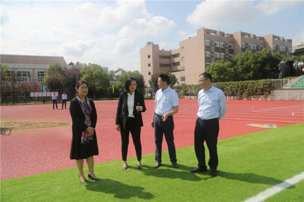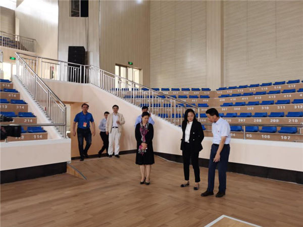 闞青鶴一行沿途聽取了校(xiào)長王玉平(píng)、校黨委書記聶曉霞關於學校西北角綜合樓和多功能報告廳建設進(jìn)展、室內體(tǐ)育(yù)館和室(shì)外操場使(shǐ)用等情況(kuàng)匯報。