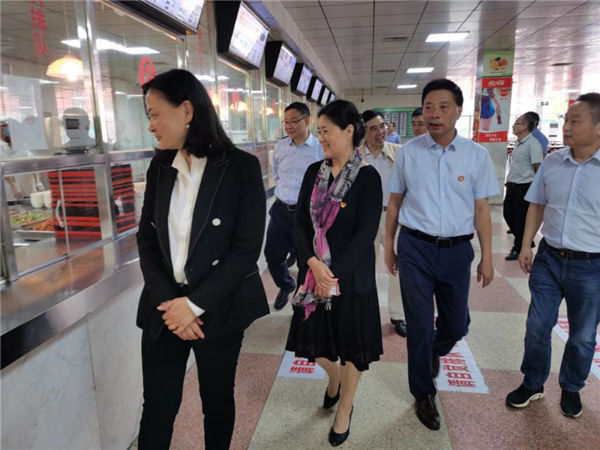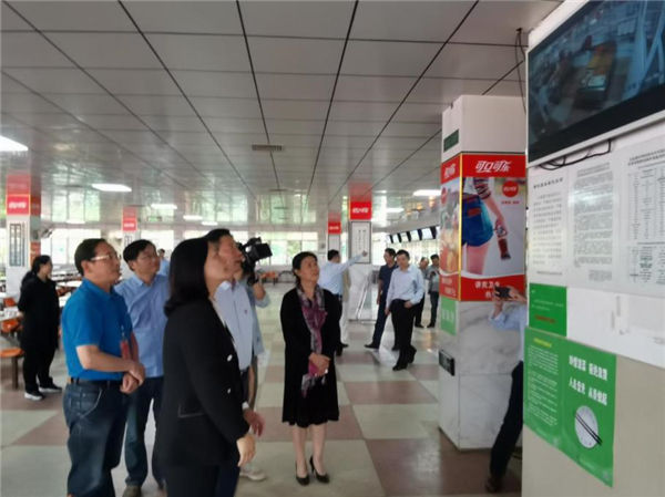 在學校食堂,闞青鶴一行檢查了學校食堂操作現場,詳細了解了(le)烹飪、清洗消毒等流(liú)程,與學校食堂(táng)負責人進行了親切交流,她指(zhǐ)出,二(èr)中食堂將食品貯存、製作及餐(cān)用具清洗消毒(dú)等過程通過視(shì)頻信號傳輸到方便師生觀看的(de)顯示屏(píng)上,這種將信息化監管引入校園食堂的“二(èr)中做法”具(jù)有借(jiè)鑒和普及意義(yì)。
