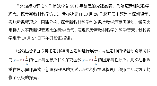 “深耕課堂,實踐(jiàn)新課程理念;同課異構,探索(suǒ)新教材教學”——我校數學(xué)組開設火炬接力人匯報課