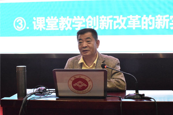 上午(wǔ)市美術教研員陳克濤老(lǎo)師主持並致歡迎詞,之後,教育(yù)部首批“國培計劃”美術學科專(zhuān)家(jiā)、教育部普(pǔ)通高中美術課程標準修訂審議專家組成員、中國教育學會首批領航培訓(xùn)專家,國家高中美術教科書副總主編房尚昆(kūn)老師進行了關於“核心素養觀下(xià)美術教師的專業發展與創新課堂”的專家講座。房老師分別從全麵理(lǐ)解(jiě)教育改革的新目標、美術教師專業發展的新路徑、課堂教學創(chuàng)新改革(gé)的新實驗三個主(zhǔ)要方(fāng)麵以自己的這些年的工作經驗(yàn)進行了生(shēng)動有趣的講述(shù);房老師從大方(fāng)麵切入小點,詳(xiáng)談如(rú)何成為新時代的美術教師,以及作為(wéi)一(yī)名優秀的美術教師需要具備哪些重要(yào)能力。