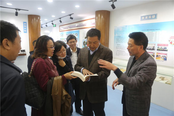校黨委書記(jì)、校長王玉平帶領南京(jīng)市教育代表團實地參觀了教學樓、食堂、體育場、校史館,並沿途介紹了學校的校園文化、辦學思想、課程改革及各具(jù)特色的社團活動。