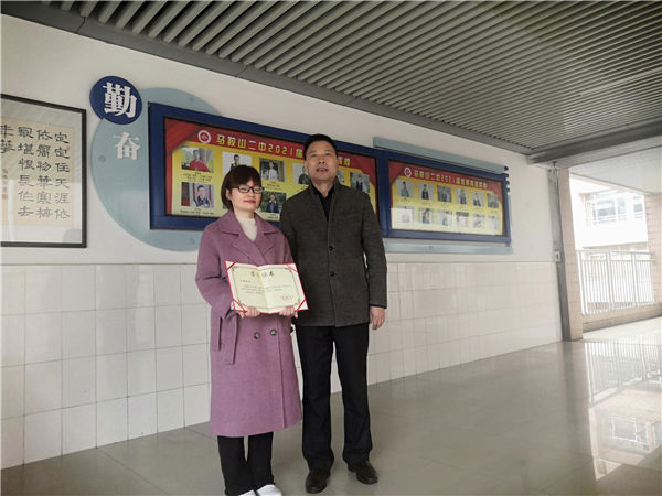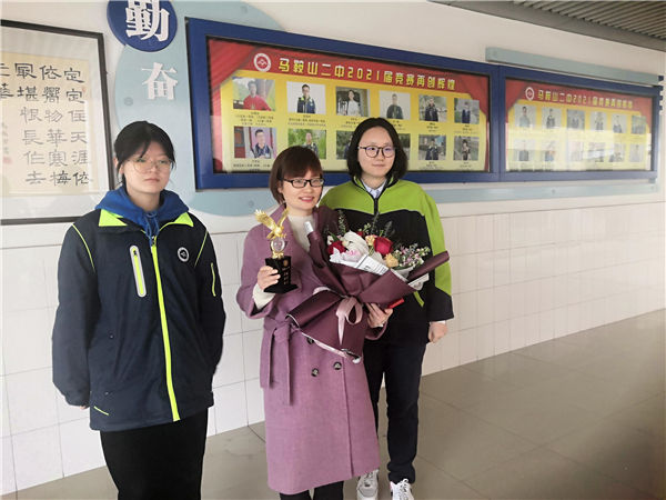 聽(tīng)完王靜女士(shì)的發言,同學們紛紛獻上熱烈的(de)掌聲和(hé)最(zuì)誠摯的敬意,王玉平校長為她頒發證書,第八屆學生校長助(zhù)理、第十九(jiǔ)屆馬鞍山二中公益服務之星唐卓悅、韋柳同學向她獻上了鮮花。