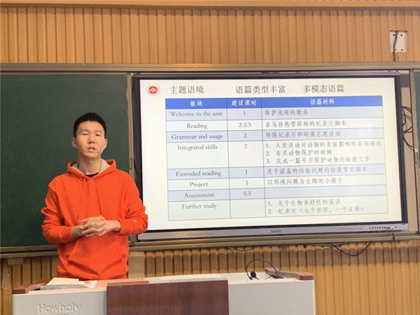 第一(yī)節的前半部分是由商林平(píng)老師講解單元整體教學設計,商老師對新教材必修三第一單元的教材進行了細致的分析解讀,羅列出了單元的九大板塊以及對應的語篇材料,並分別對每一版塊的教學目標、教學方法和(hé)設計思路做了具體闡述,為教(jiāo)師們提出了切實可行的教學策略。第一節的後半部分是由朱惠老師(shī)講(jiǎng)解(jiě)Unit 1 Integrated Skills部分的教學設計。朱老師首先對教材和學生做了詳(xiáng)細分析(xī),隨後提出了教學目標和教學重難(nán)點,並為大家展示了教學步驟和設(shè)計思路。