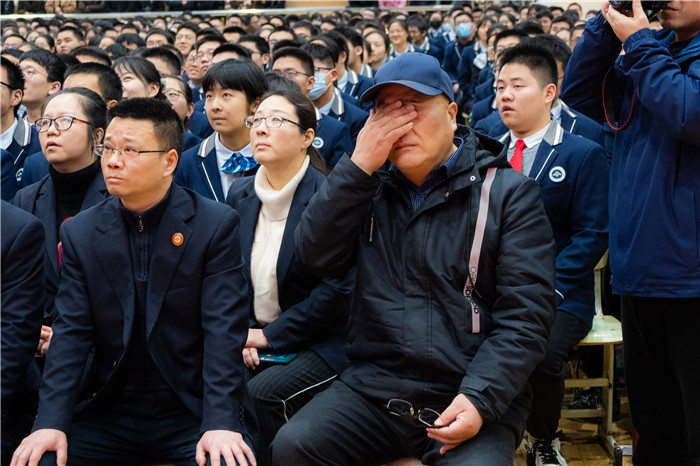 高三(1)班(bān)黎(lí)卓(zhuó)然及母親侯(hóu)振華女士,高三(11)班查玥及父親查甫周先生代表學生和家(jiā)長先後登(dēng)台致辭。他們深情(qíng)凝望,昨天你給了我生命,哺育了我,給了我鼓勵,讓我振翅飛翔;今天(tiān)你給了我成長,感(gǎn)動(dòng)了我,給了我滿足,讓我欣(xīn)慰幸福。