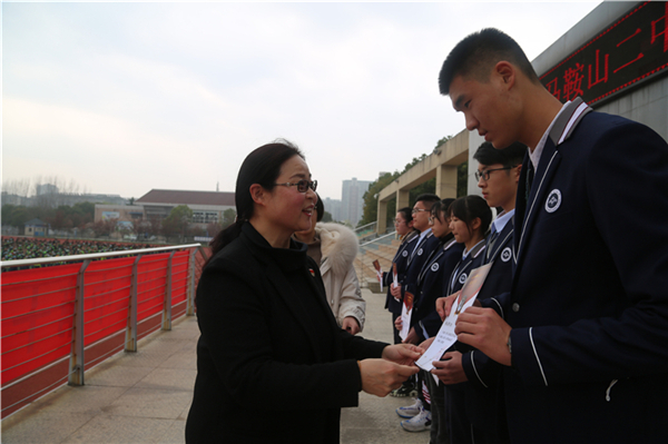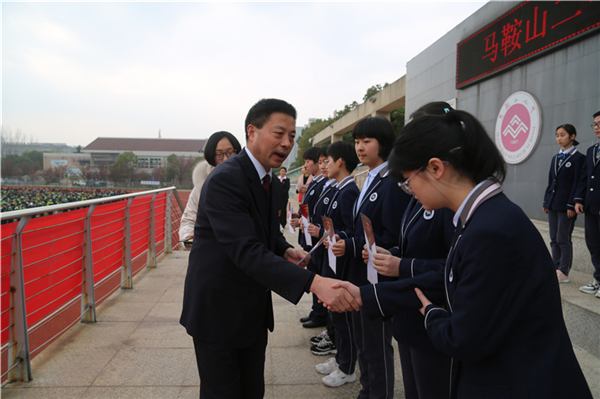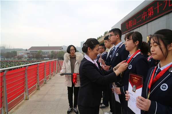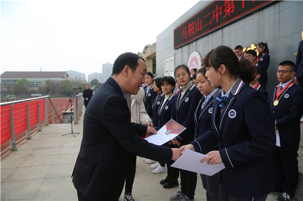 3月15日(rì)上午(wǔ),我校全體師生在操場(chǎng)集會,隆重舉(jǔ)行第十九屆校園之星表彰儀式。表彰儀式的第一(yī)項是升旗儀式,由第十九(jiǔ)屆校園之星團隊擔任領唱,全麵發展之星、203班賈心蕊同(tóng)學擔任(rèn)主(zhǔ)持。慶曉副校長宣讀了馬鞍山二中第十(shí)九屆校園之星表彰決定,校領導分別為他們(men)頒發獎牌和獲獎證書,同學們紛(fēn)紛用熱烈的掌聲向他們表示祝賀。