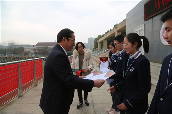 副校長褚(chǔ)亞飛(fēi)為文學創作之星和學(xué)科競賽之(zhī)星頒發獎牌和獲獎證書