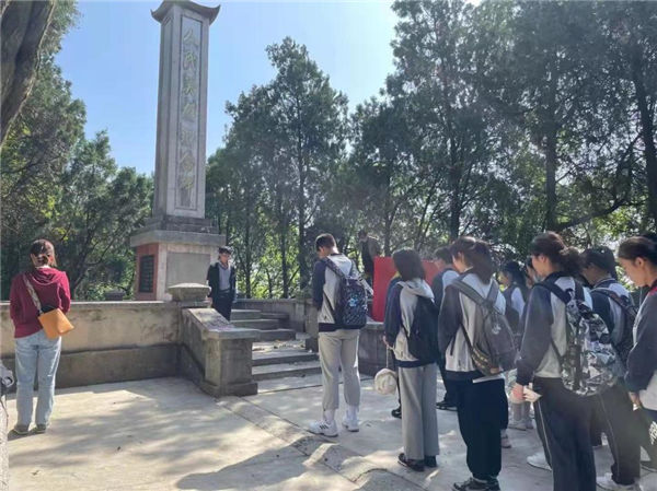 同學們首先來到西梁(liáng)山人民英雄紀(jì)念碑前祭奠烈士。由導遊張子豪先生(shēng)領誓,全體(tǐ)師生宣誓學習烈(liè)士精神(shén),建設偉大祖國。接下來舉行一分鍾默哀儀式(shì),全(quán)場寂靜肅穆,陣陣微風(fēng),仿佛是革命先輩們對後輩共建社會主義新中國的召喚。當主(zhǔ)持宣布儀式結束後,各位同學也靜默肅立,仍(réng)然(rán)沉浸在對烈士們的追憶中。