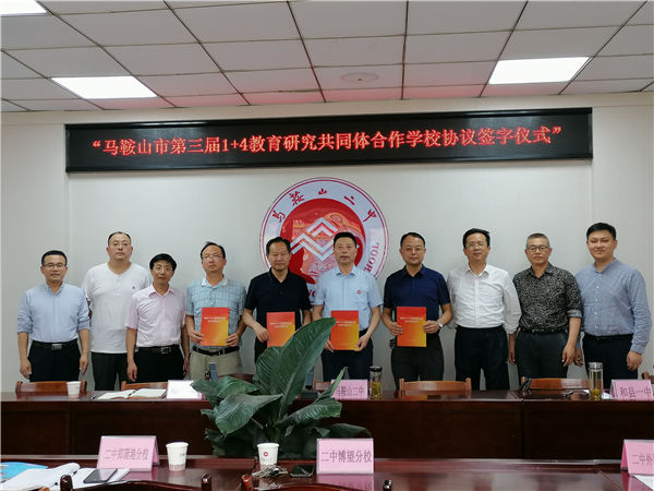 2021年5月14日,第三屆“1+4教(jiāo)育研究共同體”合(hé)作學校簽字儀式(shì)在馬鞍山二中舉行,簽字(zì)儀式由馬鞍(ān)山二中教科處沈榮主任主持,沈榮主(zhǔ)任宣講了市教育局《關(guān)於公布馬鞍山市第三屆(jiè)“1+4”教育(yù)研究共同體名單的通知》,馬鞍山二(èr)中校長王玉平、當塗一中校長穀榮生、和縣一中副校長沈強、含山中學(xué)教科室主任戴德文分別代表學校簽訂(dìng)了合(hé)作協議書。穀榮生、沈強和(hé)戴德文分別代表(biǎo)共同體參與學校發言(yán),一致表示要在馬(mǎ)鞍(ān)山二(èr)中的帶領下,通過共同體(tǐ)合(hé)作學校的深度交流,推(tuī)動學(xué)校教育教學高質量發展。
