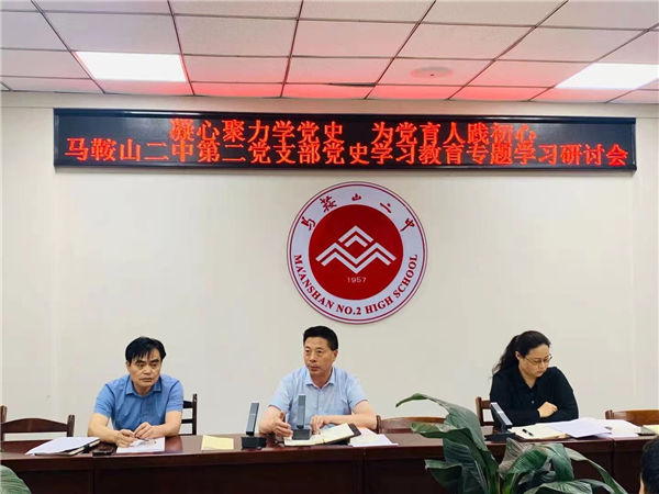 5月7日下午(wǔ),馬(mǎ)鞍山二中鄭蒲(pú)港分(fèn)校黨支部召開了黨史學(xué)習教育專題學習研討會(huì),全體黨員(yuán)出席會議。