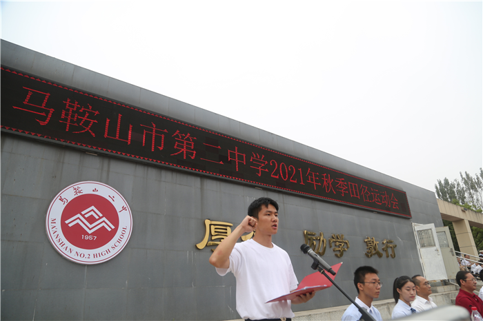 校黨委書(shū)記、校(xiào)長王玉(yù)平宣布馬鞍山二中2021年秋季運(yùn)動會正(zhèng)式開始,台下響起了熱烈的歡(huān)呼聲。