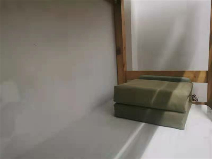 這(zhè)是一個標(biāo)準的“豆腐(fǔ)塊”,方形的被子輪廓分明,四角立體,上下平整,高度適中,方方整(zhěng)整的叫人(rén)羨慕。