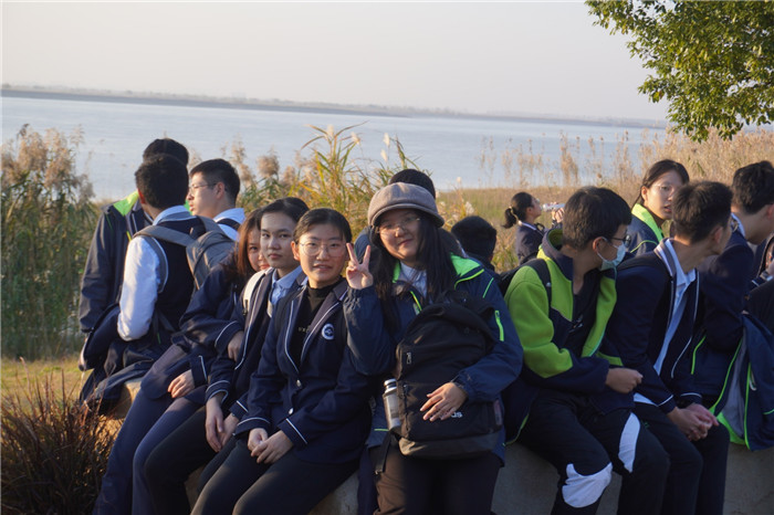 同學們十人一組,或駐足觀賞,或拍照留念,說說笑笑,其樂融融。盧(lú)大(dà)亮老師還跟學生講起(qǐ)濕地的相關知識,解答了相關問(wèn)題。同學們臉上洋溢著(zhe)幸福的笑容。
