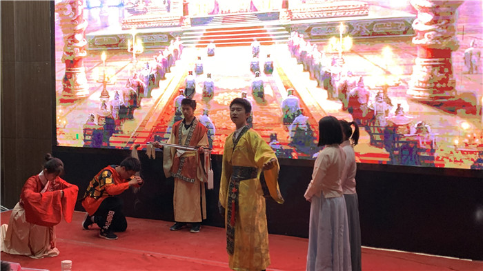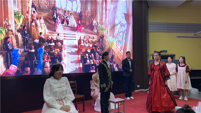 高二年級21個(gè)班級按照抽簽順序依次上台進行表演,短(duǎn)劇內容題材多樣,主要有電影片段和名著節選,如《小王子》《哈利(lì)波特》《水滸傳》等。還有(yǒu)個別班級富有創造力地自編自導劇本,複述了重大(dà)曆史事件,緊(jǐn)跟時政熱點,讓老師和同學們眼前一亮(liàng)。不僅如此,演員們的語音語調也得到了各(gè)位老師的認可和讚(zàn)賞。