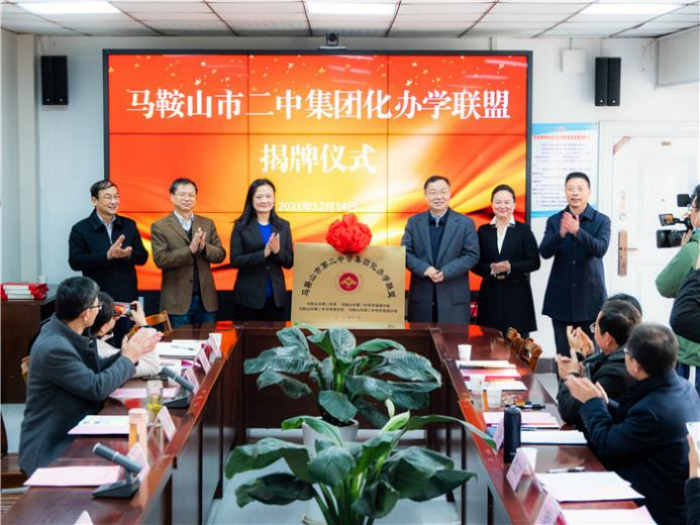 為滿足人民群眾對優質教育(yù)的需(xū)求,發揮(huī)名校示(shì)範、引(yǐn)領、帶動、輻射作用,2021年12月(yuè)14日,馬(mǎ)鞍山市二中集團化辦學聯盟揭牌儀(yí)式在我校舉行。聯盟總校為市二(èr)中,成員學(xué)校為二中鄭(zhèng)蒲(pú)港分校、二中博望分校、二中(zhōng)外國語分校。