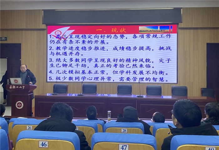 為切實(shí)加強高三教育教學管(guǎn)理,提高複習備(bèi)考質量,2月18日下午,我校召開高三年級教育教學工作會議。校黨委(wěi)書記、校長王(wáng)玉平,工會主席、高三年級分(fèn)管領導(dǎo)畢小紅,副校長王躍兵及(jí)高(gāo)三年級全體教師參加會議。