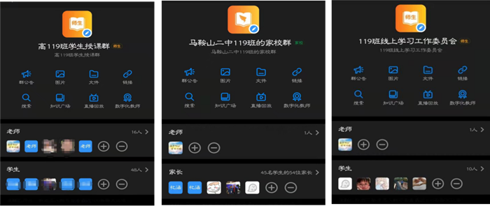 緊(jǐn)接著第二天,學校通知班主任十點到校召開工作會議,搭建網上教(jiāo)學平台。短短兩小時之內,包括所有任課(kè)教師和學生在內的授課群,包含各科課代表在內的(de)學習工作委員群以及聯係(xì)家長的家校群構建完畢。