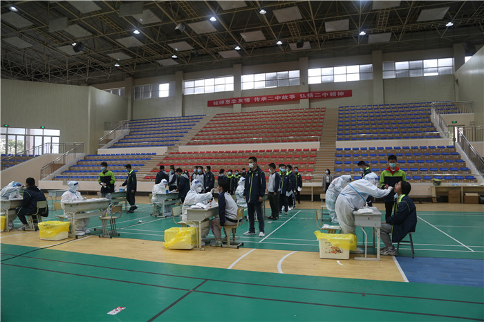 7時30分起,全體師生員(yuán)工在校體育館進行返校(xiào)後的第一(yī)次(cì)核酸檢測,嚴格執行隔(gé)天一次核酸檢測製度。