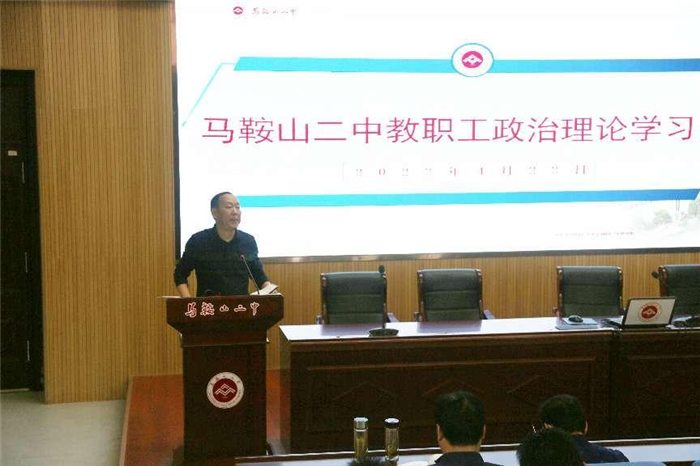4月22日下午,馬鞍山二中在二樓報(bào)告(gào)廳召(zhào)開全體教職工政治(zhì)理論學習會。