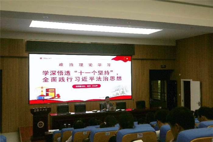 校黨委書(shū)記、校長(zhǎng)王玉平在總結(jié)講話中就近期的學校(xiào)工作做了重點強調,他指出,安全是基石,一點(diǎn)也不能(néng)鬆動;教學(xué)是命脈(mò),一點(diǎn)也不能鬆勁;師德是靈魂,一點也不能鬆(sōng)懈;資源是保障,一點也不能(néng)浪(làng)費。最後,他以《學(xué)深悟透“十(shí)一(yī)個(gè)堅持”, 全麵踐行習近平法治思想》為題,為全體教職(zhí)工作政治理論(lùn)學習輔導報告。