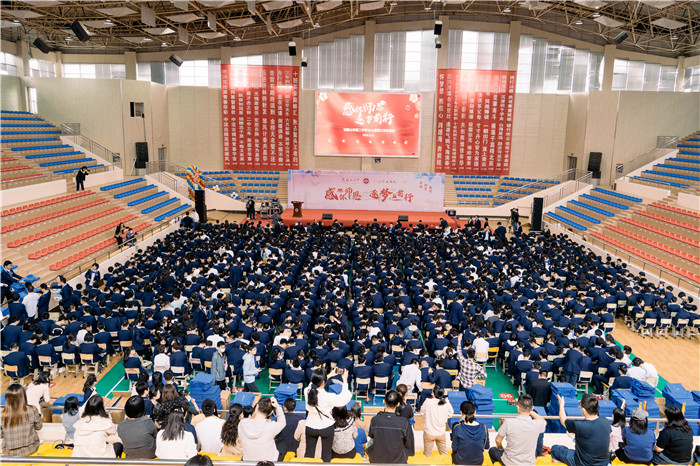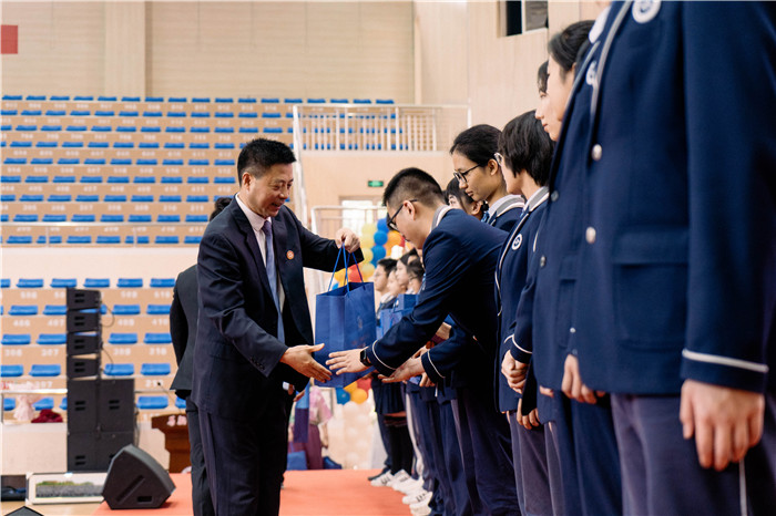 校黨委書記、校長王玉平以“清荷尖角已嶄露,雛鷹振(zhèn)翅欲奮飛”為題(tí),發表了熱情洋(yáng)溢的致辭。他首先向圓滿完(wán)成三年學業的全體高三學子表示熱烈祝賀和衷心祝願(yuàn),向全體高三教師、全體(tǐ)行政人員、各位家長年複一年、日複一日的辛勤付(fù)出致以崇高的敬意。在這行將離別之際,作為師長,他殷殷告誡並(bìng)勉勵同學們:真(zhēn)心對自己,不負人(rén)生;誠心待他人,不負社會;忠心報國家,不負中華(huá)。王校長的致辭聲情並茂,讓同學們如沐春風。