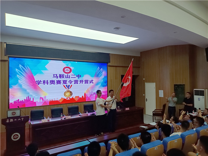 校(xiào)黨委書記、校長王玉平宣布馬鞍山二中學科奧賽夏令營正式開營,並將營旗(qí)交到營員代表王(wáng)浩瑞的手中,這既是文化的傳承,更是責任的傳遞。
