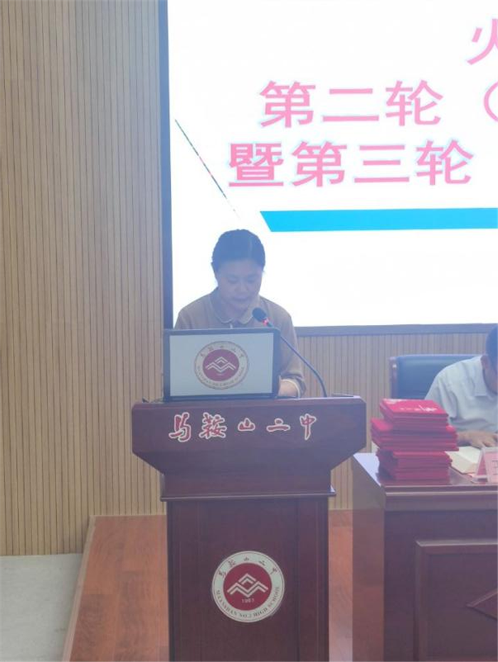 校黨委副書記聶曉霞宣讀火炬接力夢之隊第二輪考核結果,校領導為馬(mǎ)鞍山二中黨建品牌“火炬接力夢之隊”第二輪考核獲獎接力組頒獎頒發證(zhèng)書。