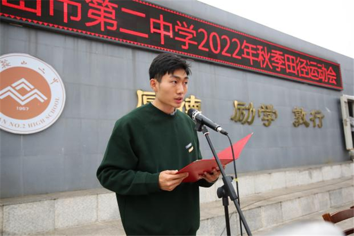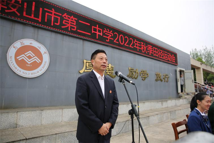 校黨委書記、校長王玉平宣布馬鞍山二中2022年秋季運動會正式開始(shǐ),台下響起了熱烈的歡呼(hū)聲。