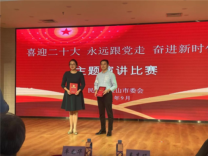 2022年9月24日,民進馬鞍山市委會組織了“書香民進”——“喜迎(yíng)二十大(dà)、永遠(yuǎn)跟黨走、奮進新時代”主題演講(jiǎng)比賽,來自全市十二(èr)個支(zhī)部的選手參加了演講。經過激(jī)烈(liè)的角(jiǎo)逐,民進二中支部李宏磊老師在(zài)此次比賽中榮獲一等(děng)獎。