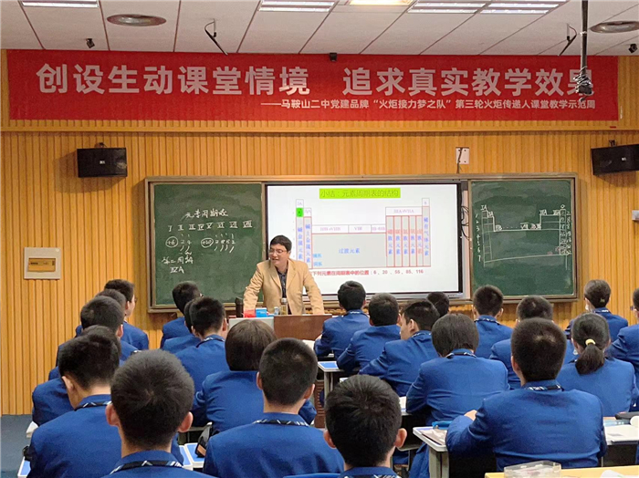 金秋十月,秋風送爽,丹桂飄香,主(zhǔ)題為“創(chuàng)設生動課堂情境,追求真實教學效果 ”火炬傳遞活動於(yú)10月26日上午在馬鞍山二中開(kāi)展。本次(cì)示範課由馬鞍山(shān)二(èr)中的葉張平老師以(yǐ)及顧巍老師進行展示。馬鞍山市(shì)教科院副院長(zhǎng)、化學教研員(yuán)周(zhōu)朝輝,馬(mǎ)鞍(ān)山二中校長王(wáng)玉平、教導主任葉張平、教科處主任沈榮以及全市各中學化學教師蒞臨參加(jiā)本次活動。