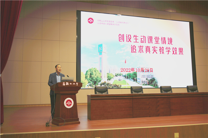 總結會上,教科處主任沈榮就本次示(shì)範周主題“創設生動課堂情境,追求真實教學效果”作了闡述,對課堂教學示範課一一作了點評。