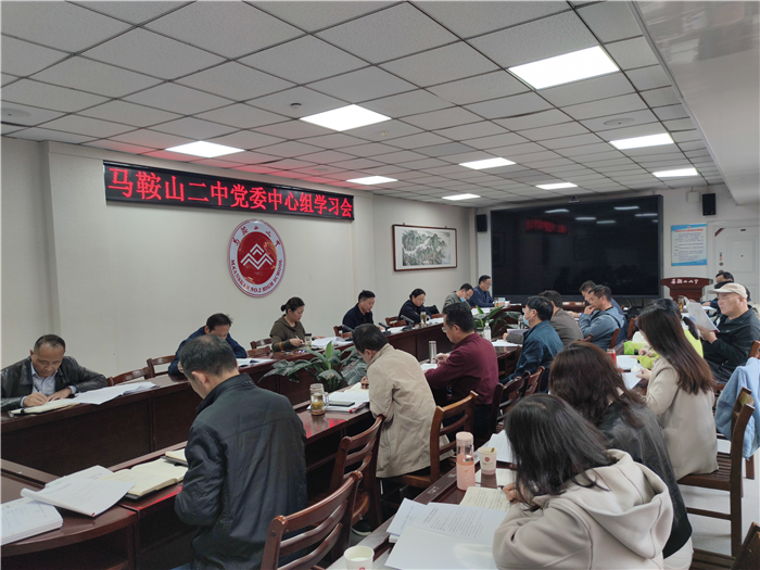 11月7日,馬鞍山(shān)二中黨委在行政樓一樓會議(yì)室召開中心組理論學習會(huì),會議由校黨委書記、校長王玉平主持,學(xué)校黨委委員、各(gè)支部書記、學校(xiào)中層以(yǐ)上黨員幹部參加了(le)會議(yì)。
