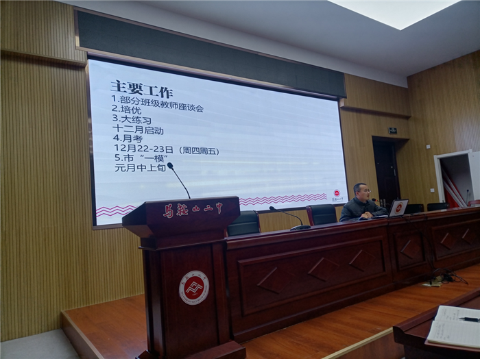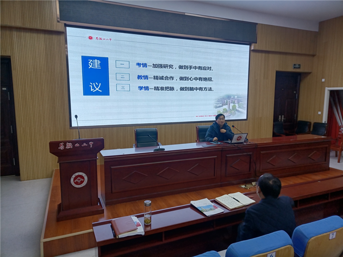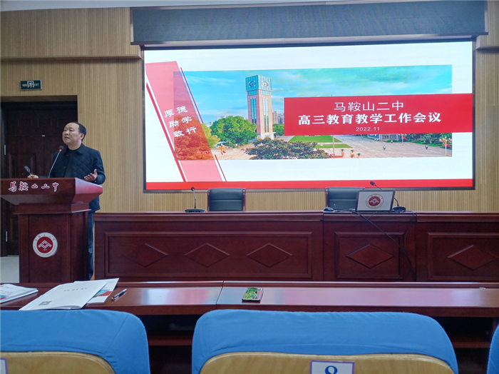 11月18日下午,馬鞍(ān)山二中在行政樓二樓報告廳召開高三(sān)年級期(qī)中聯考成績分析會。高三全體教師參(cān)會,副校(xiào)長慶曉、王躍兵以及教導處主任葉張平與會指導。會議(yì)由高三年級部主任(rèn)孫誌農主持。
